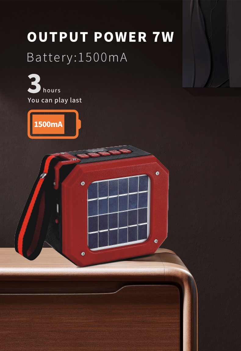 * Features: Bluetooth playback, selfie, reading U disk, TF card, FM radio, TWS interconnection, solar charging, strong light flashlight