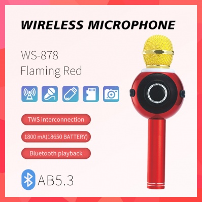 产品型号:WS-878 可选颜色:白,红,黑 喇叭规格:4Ω 5W 电池容量:1800mAh 输出功率:5W 蓝牙版本:AB5.3 传输距离:10米 标准配件:音频线,充电线 毛 重:18.5KGS 机身尺寸:9*9.2*25.3CM 外箱尺寸:30*40.2*55.5CM 包装数量:40 PCS