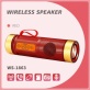 *型号:WS-1863 *功能:蓝牙播放,读U盘,TF卡,FM收音,本地录音,自拍,照明 *输出功率:1*5W *喇叭:45mm*1 *震模:有 *电池:1*1200毫安 *收音:FM 88-108 *蓝牙版本:AB5.3 *颜色:黑,红,蓝 *产品尺寸:21.1*6*6CM *卡通尺寸:49.5*41*53CM *PCS/CTN:60 *净重/毛重:25/27KGS *输入电压:5V