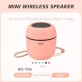 *型号: WS-Y06(蓝牙音响) *功能:蓝牙/TF卡/对箱/收音 *输出功率:5W *喇叭:40MM *电池: 500毫安 *收音: FM 88-108 *蓝牙版本: AB5.3 *颜色: 白,黑,粉,蓝,绿 *产品尺寸:6.4*6.4*7.2cm *外箱尺寸: 38*34.5*32.4cm *装箱数量: 100PCS *净重/毛重: 18.5/19.5 *输入电压: 5V