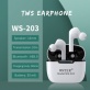 *型号:WS - 203 *功能:蓝牙播放音乐,蓝牙打电话,电池灯显示 *输出功率:5MW~10MW *喇叭:10mm, 32R *充电仓:300mA *耳机电池:30ma *传输:10米 *蓝牙版本:AB5.0 *颜色:黑色,白色 *产品尺寸:6*3*4.8CM *纸箱尺寸:48.3*31.9*48CM *PCS/CTN:100 *净重/毛重:7.72/9 *输入电压:5V